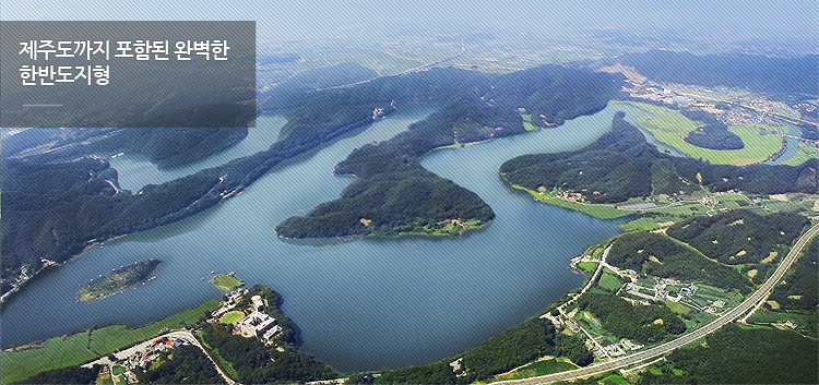 푸른 용 형상의 초평저수지가 둘러싸고 있는 한반도 지형은 용이 수호하고 있는 듯한 모양을 하고 있습니다.